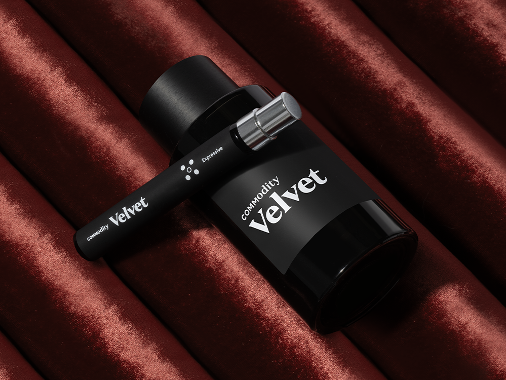 " Commodity Velvet puhul inspireeris mind pilt elavatest roosadest Türgi roosi kroonlehtedest, mis hõljuvad õrnalt salapärasel, tumedal taustal, mis koosneb rikkalikult soojast vanillist ja mustast merevaigust ning õhus hõljuvast röstitud mandli hõrgutavast puudutusest. Velvet Bold jaoks on Türgi roos täiustatud eksootilise safranimaitse ja magusa vanilliga. Lõpetuseks ühendasin labdanumi ja merevaigu soojuse ja rikkalikkusega, luues intensiivse, keerulise ja ahvatleva lõhna." - Jerome Epinette.